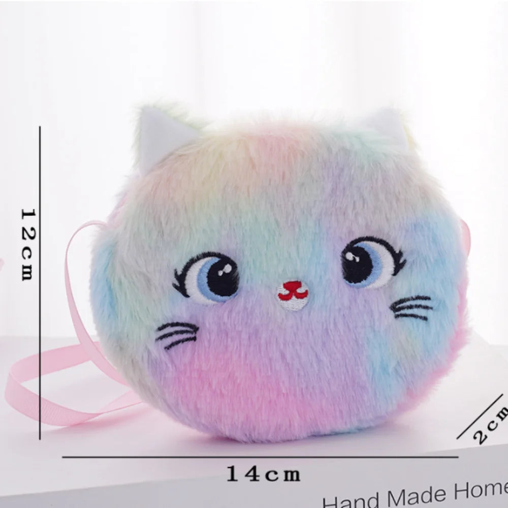 Plush Rainbow Cat Crossbody Bag – Kids Messenger Bag