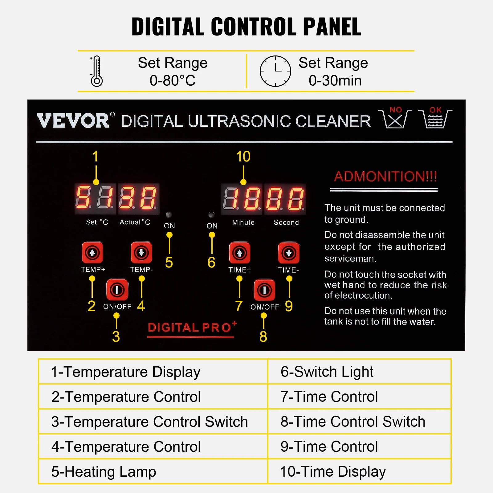 Digital Control Panel: The digital control panel offers convenient operation, allowing precise control over cleaning time and temperature. Multiple modes cater to different item-specific needs, making the cleaning process hassle-free and enhancing your cleaning efficiency.